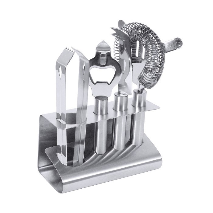 souprava barová 5-dílná nerez. Obsahuje - sítko, nůž, kleště na led a otvírák.