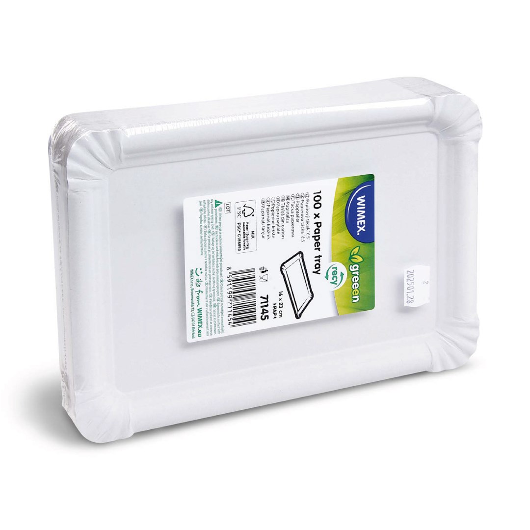 Papírový tácek zrecyklovaného materiálu.